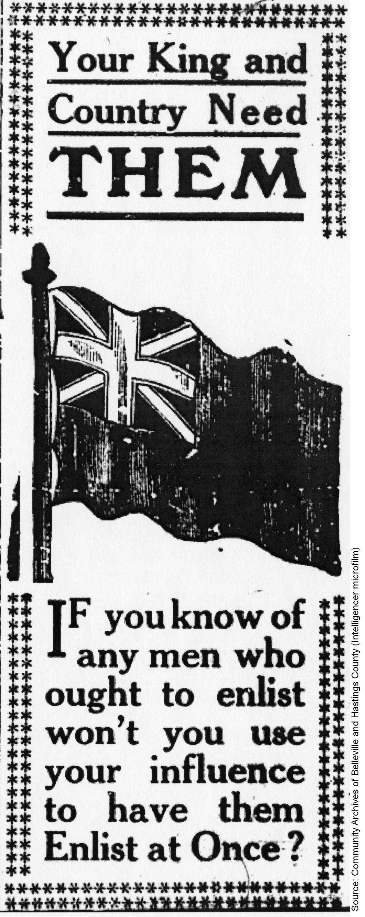 100 Years Ago: Recruiting Poster November 9, 2015 ~ Laurel Bishop The Intelligencer November 9, 1915 (page 1) “Your King and Country Need THEM. If you know of any men who ought to enlist won’t you use your influence to have them Enlist at Once?” Share this: Click to share on X (Opens in new window) X Click to share on Facebook (Opens in new window) Facebook Like Loading... Related Published by Laurel Bishop View all posts by Laurel Bishop