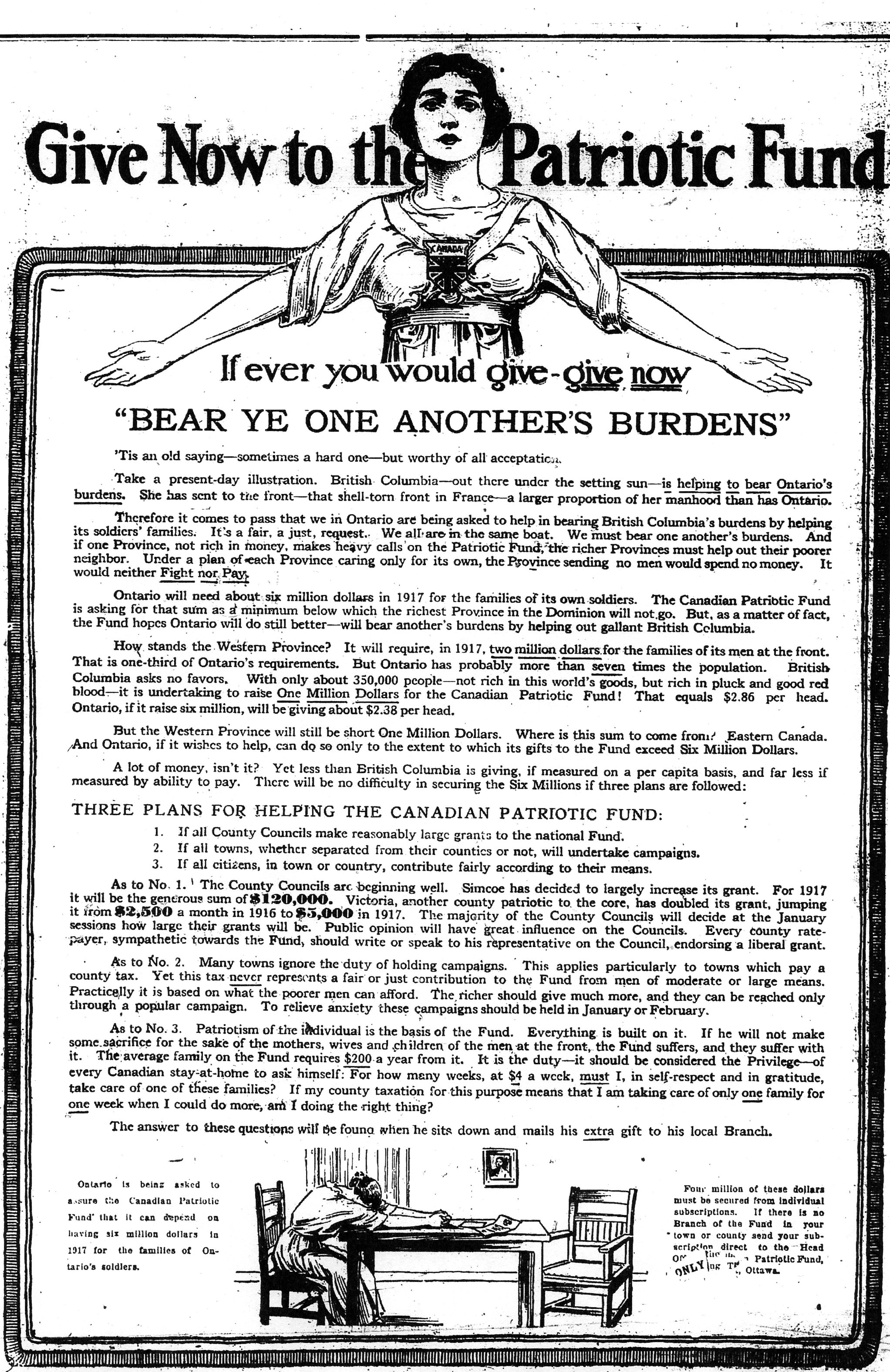 Give Now to the Patriotic Fund. If ever you would give—give now. ‘Bear Ye One Another’s Burdens’ ”