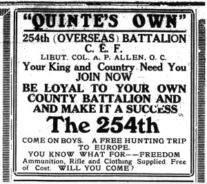 ” ‘Quinte’s Own’ 254th (Overseas) Battalion C. E. F. Lieut. Col. A. P. Allen, O. C.