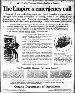 “Be a Sinew in the Colossus of Production. A call to Sow that we may Reap. Ontario’s farms stand in dire need of labor at this seeding time. …