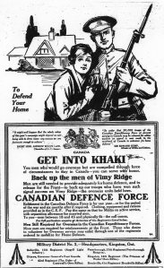 Back up the men of Vimy Ridge. Canadian Defence Force.”