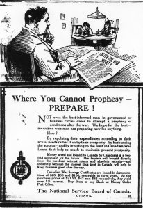 “Where You Cannot Prophesy—Prepare! Money saved and loaned to Canada by Canadians is a two-fold safeguard for the future. The lenders will benefit directly from the excellent interest return and absolute security—and indirectly because the interest thus kept in Canada will help to keep business good after the war.