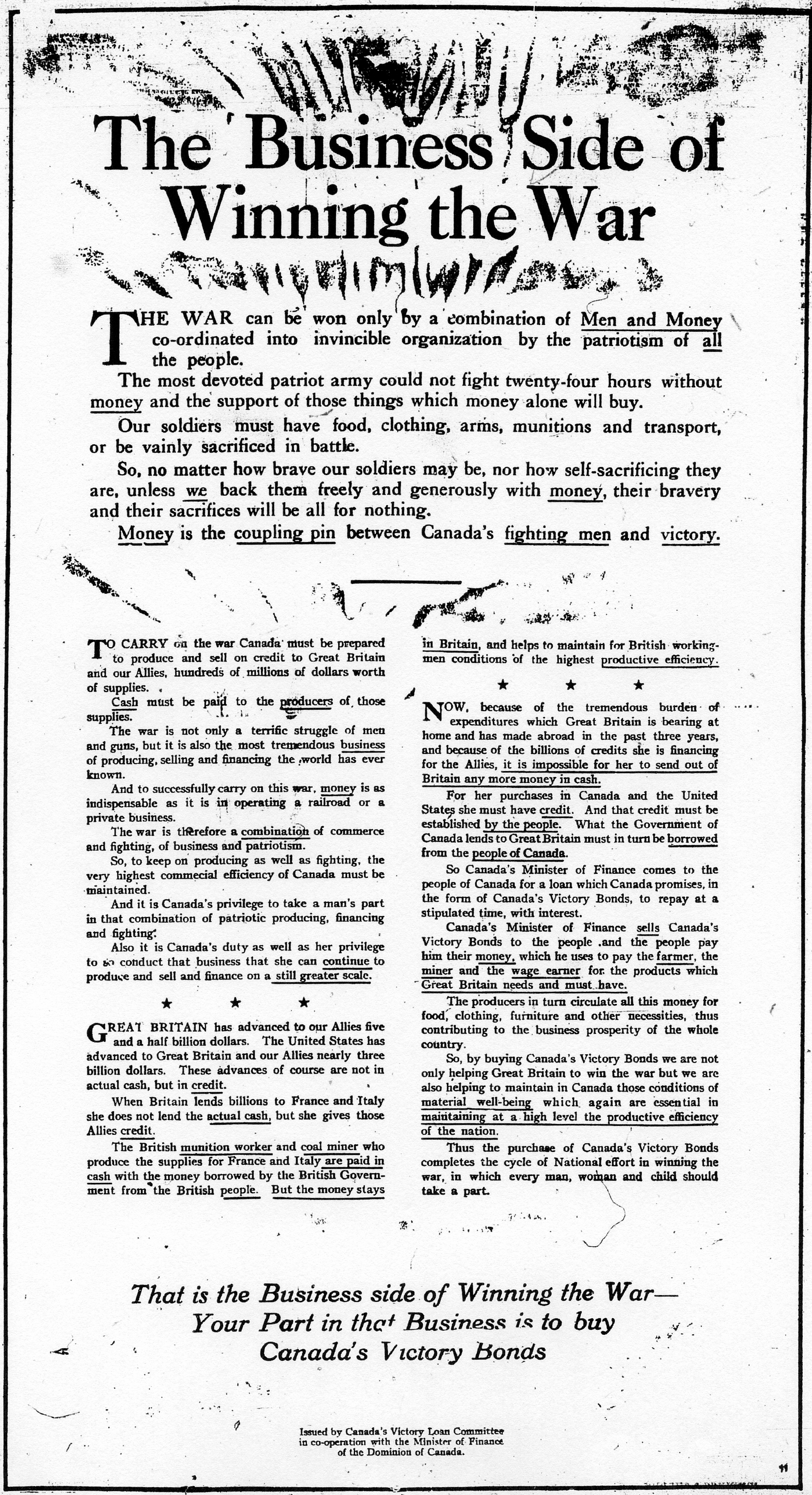 That is the Business side of Winning the War—Your Part in that Business is to buy Canada’s Victory Bonds.”
