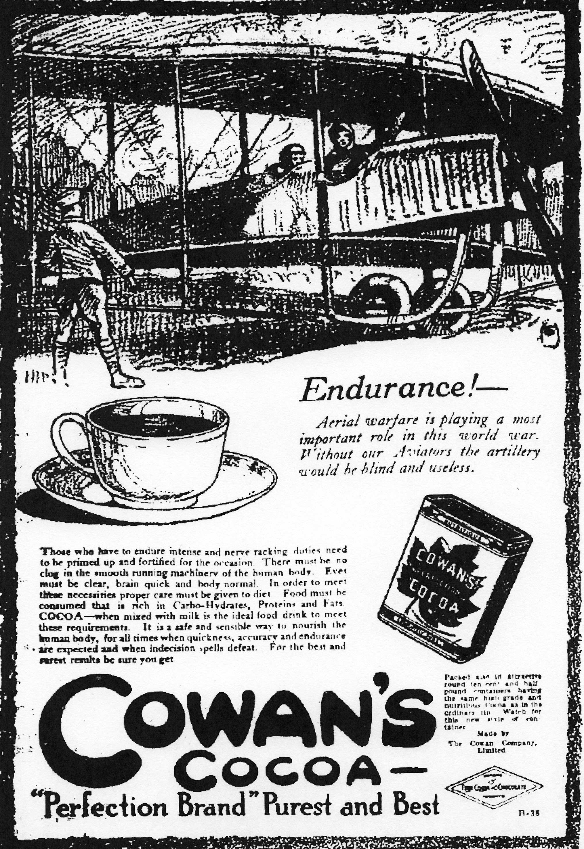 For the best and surest results be sure you get Cowan’s Cocoa—’Perfection Brand’ Purest and Best.”