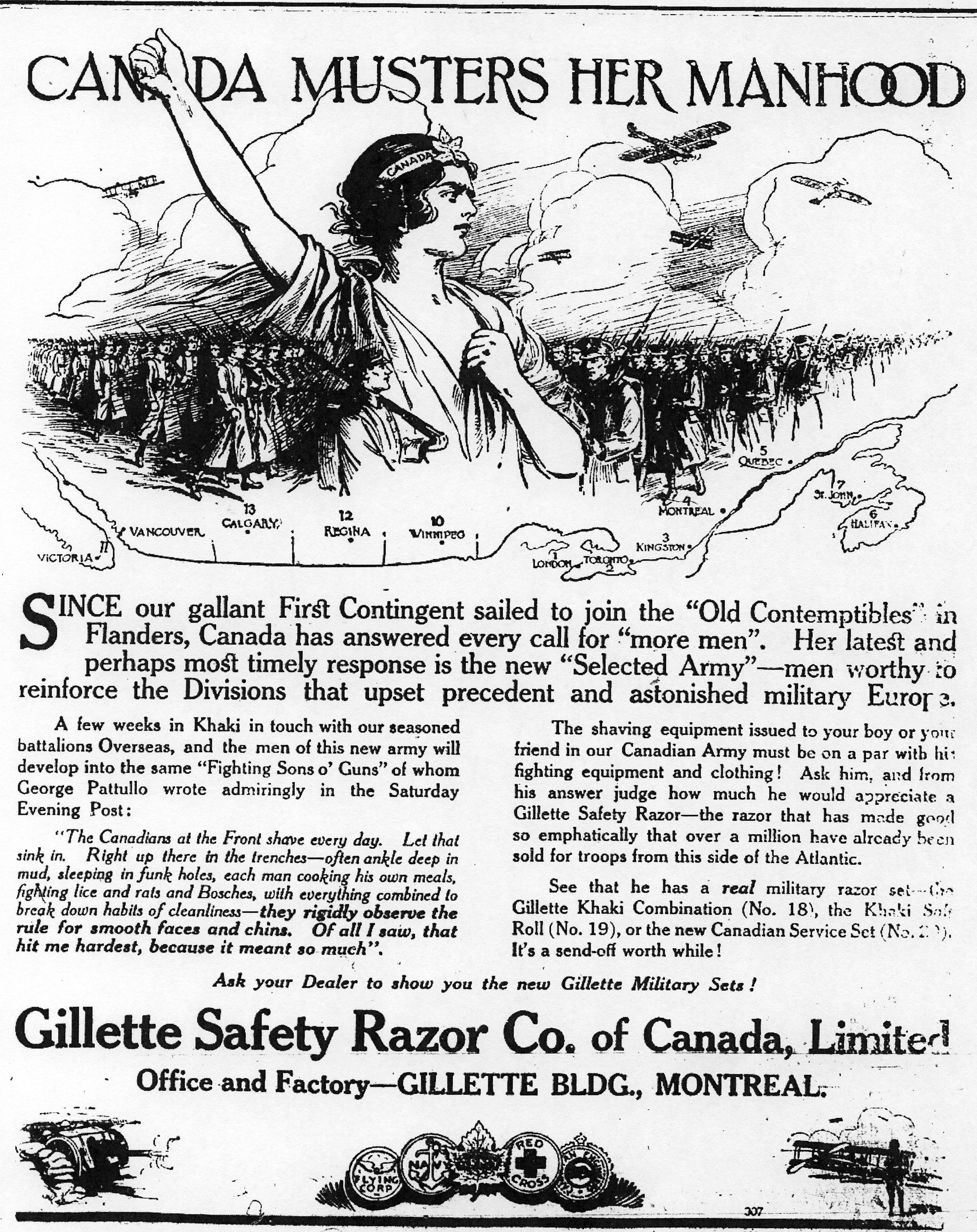 “Canada Musters Her Manhood. Since our gallant First Contingent sailed to join the ‘Old Contemptibles’ in Flanders, Canada has answered every call for ‘more men.’ Her latest and perhaps most timely response is the new ‘Selected Army’—men worthy to reinforce the Divisions that upset precedent and astonished military Europe.