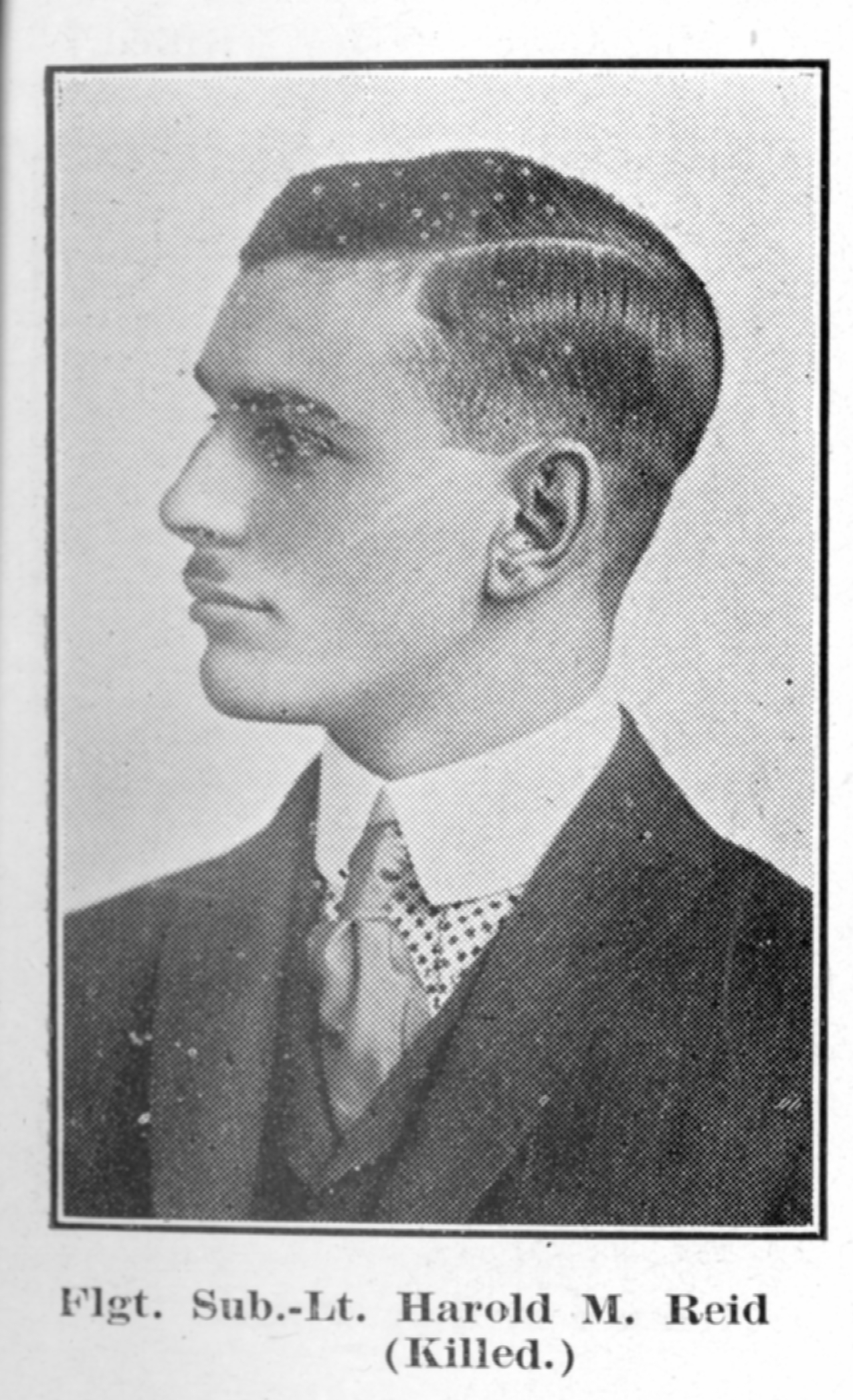 “An Eventful Voyage. The body of Flight Lieut. Harold Mackenzie Reid, son of Mr. and Mrs. C. M. Reid, who on February 23rd was killed at Eastchurch, England, as the result of an aeroplane accident arrived in this city on Sunday afternoon via C. P. R. Many relatives and friends were at the station to meet the train conveying the body, which arrived at 3.15 p.m. Accompanied by eight members of the staff of the Ritchie store the body was taken to the mortuary parlors of Tickell & Sons. Subsequently the casket was taken to the home of the parents, 105 Bridge street east, being escorted by a number of the employees of the Ritchie Company. …