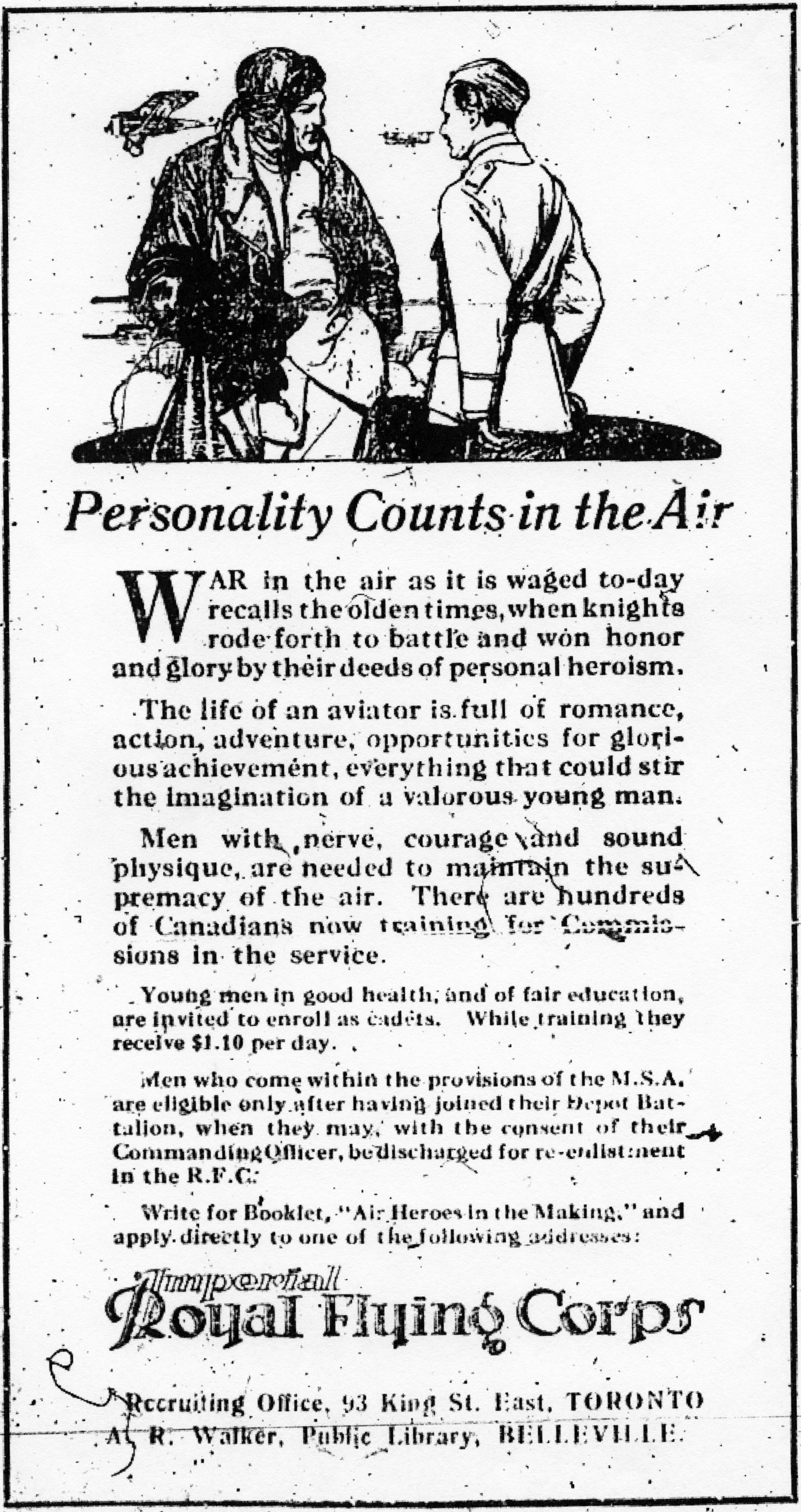Men with nerve, courage and sound physique, are needed to maintain the supremacy of the air. There are hundreds of Canadians now training for Commissions in the service.