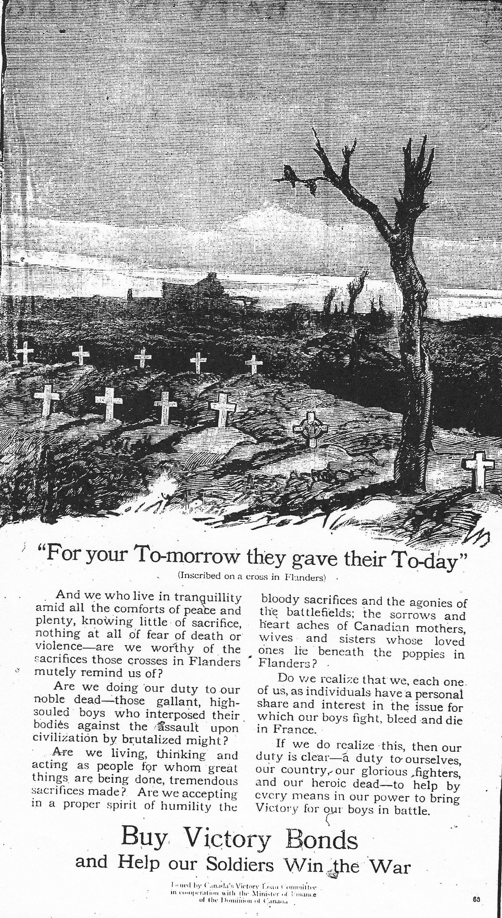 Do we realize that we, each one of us, as individuals have a personal share and interest in the issue for which our boys fight, bleed and die in France. If we do realize this, then our duty is clear—a duty to ourselves, our country, our glorious fighters, and our heroic dead—to help by every means in our power to bring Victory for our boys in battle.