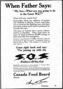 “Heed The Call BOYS! This is your opportunity to serve your King and Country—Enlist right now in the S. O. S. Soldiers of the Soil.