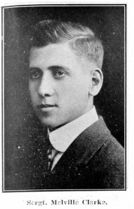 “Corp. Clarke Returning. Mr. and Mrs. W. P. Clarke, 93 Front Street, received a telegram last evening from their son, Corp. E. Melville Clarke, stating that he had arrived at Halifax, and would be home in a few days. Corp. Clarke is one of the ‘Firsts’ having left Belleville in August, 1914, under the command of Lt.-Col. O’Flynn and Major Ponton with whom he served in the ‘Fighting Second,’ and afterwards under the late Cap’t. ‘Billy’ Hudson.