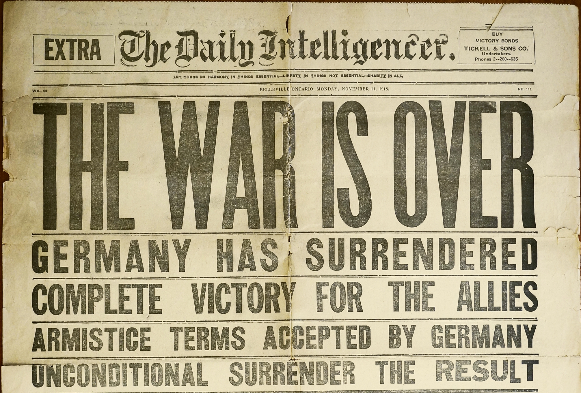 “Great Final Canadian Victory. The good old County of Hastings once more came to the front in a great patriotic effort. The Victory Loan Canvassers’ objective of $2,100,000, $150,000 special subscriptions making $2,250,000 the complete objective was reached on Saturday night. Already the City of Belleville has subscribed over $800,000 and the County of Hastings over $2,400,000. This was not done without extremely hard work. Up until twelve o’clock Saturday night throughout the entire County the canvassers were at work till the last minute until the stroke of twelve. All evening long the offices were crowded and the large staff kept busy every moment of the time. Subscribers were writing applications on tables and desks all over the headquarters. This last minute rush put the County well over the objective.
